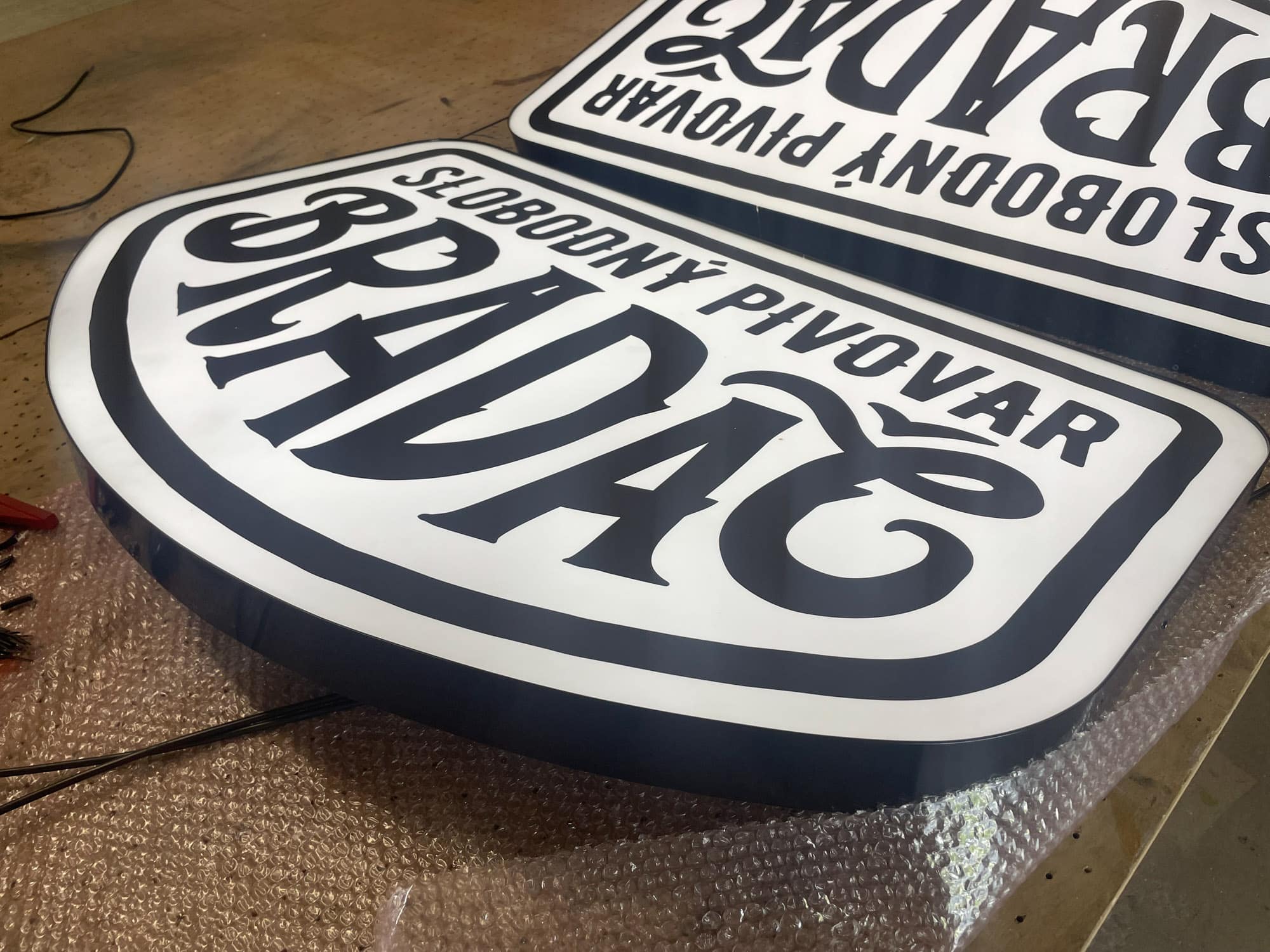 Atyp light box is mainly applied to shaped light boxes, circular boxes or shapes that copy the logo shapes. As this is an atypical way of producing the box, we look for a creative way of realization for each assignment. We offer them in single-sided design only and they can be used both indoors and outdoors. Atyp Classic light boxes are made of opal plexiglass and the sides are made of aluminium sheet or AluBond. In case you are looking for something atypical, do not hesitate to contact us with your request for an Atyp light box. Square and oblong shaped light boxes also look very elegant and modern in this design.